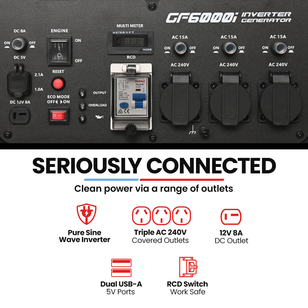 - 1 x GenPower GF6000i Open Frame Inverter Generator